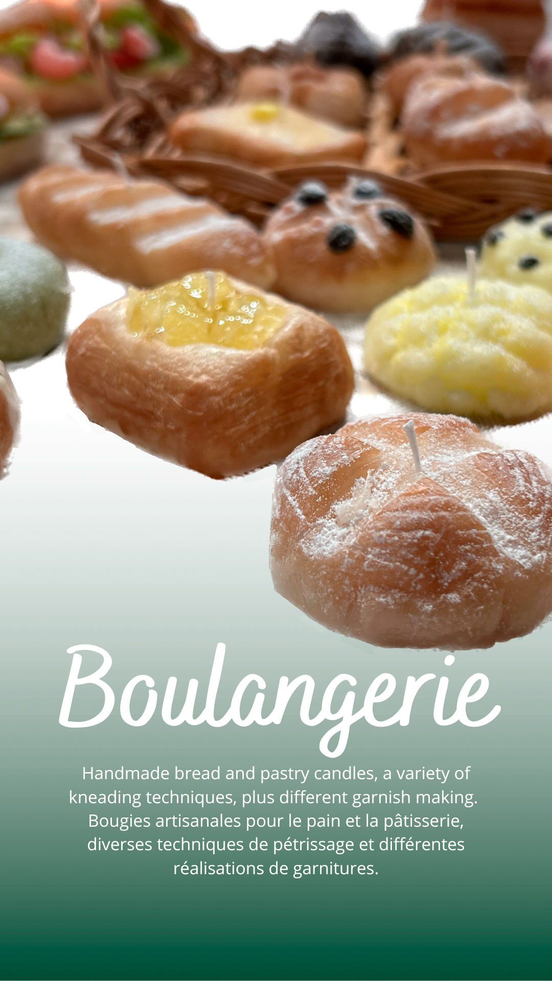 The special hand-kneaded techniques you learn in this workshop will enable you to create a variety of bakery candle items, just like those you see in a bakery shop!