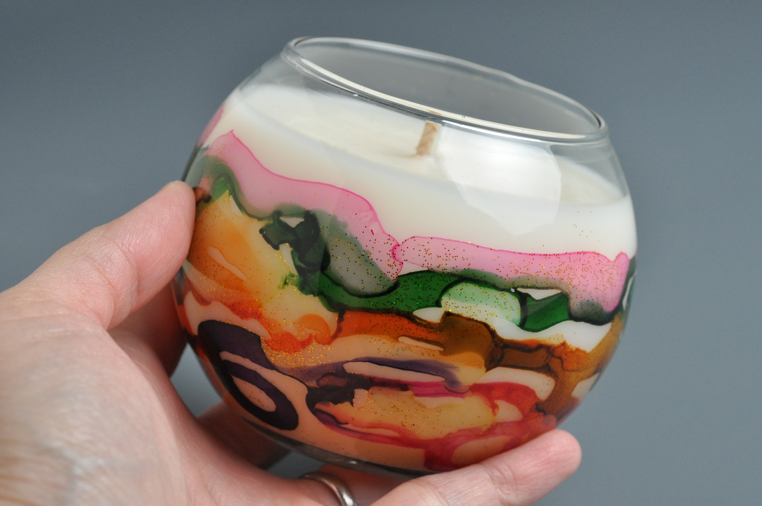 - Container candle optimization for burning and appearance